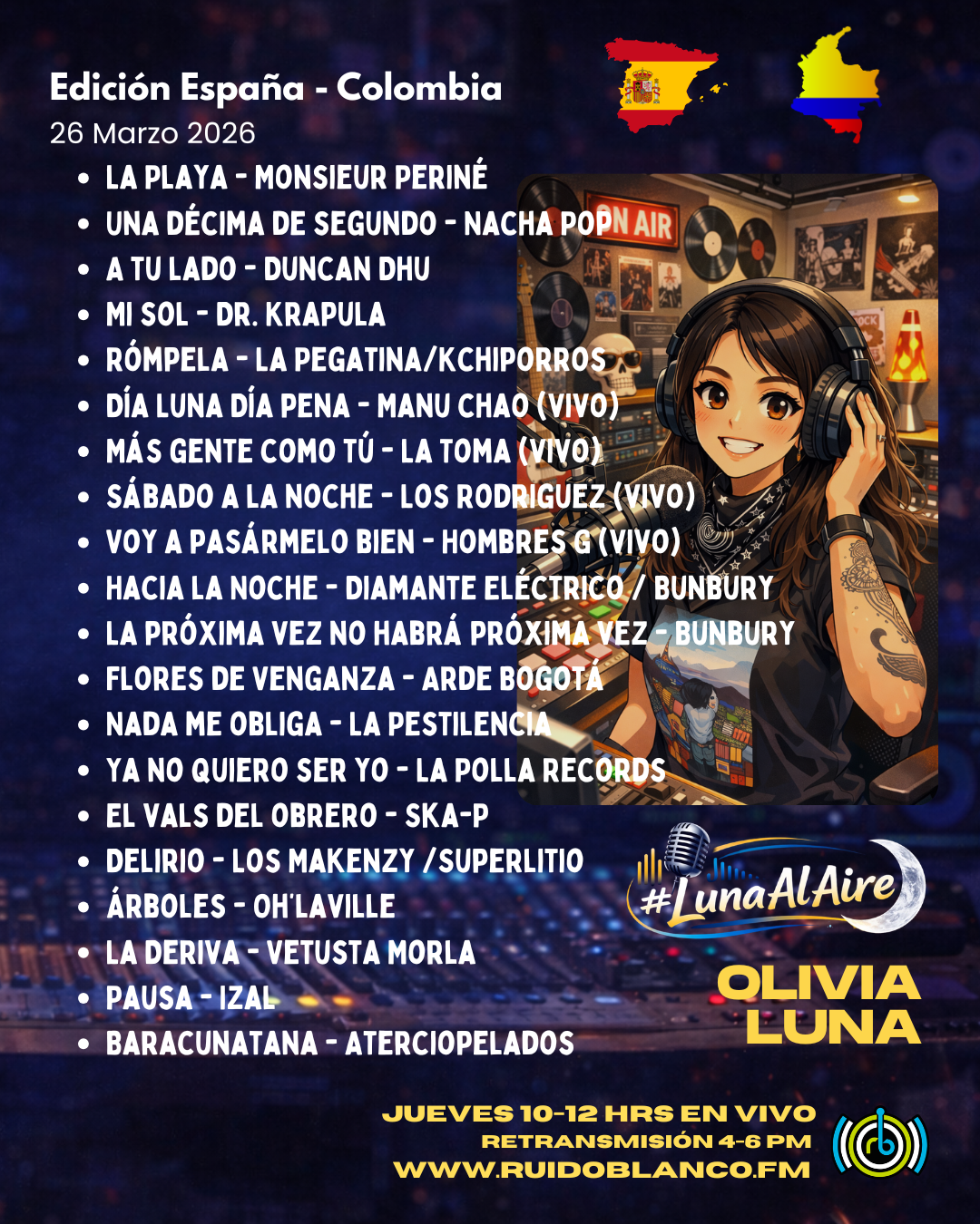 Escucha a Olivia Luna en vivo por www.ruidoblanco.fm Jueves 10 am